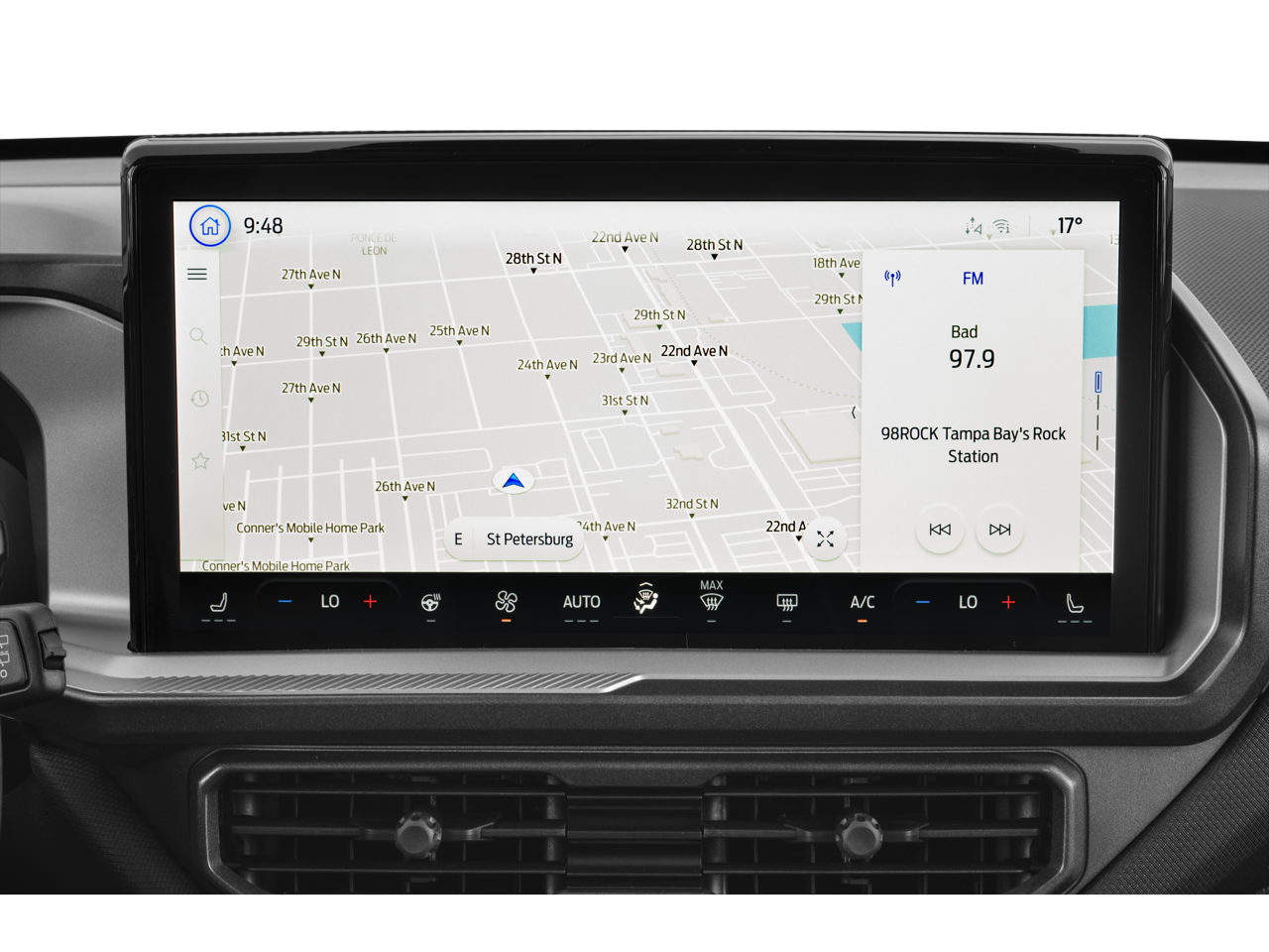 Equipment Group 400A, 4-Wheel Disc Brakes, 6 Speakers, ABS brakes, Air Conditioning, Alloy wheels, AM/FM radio: SiriusXM, AM/FM Stereo, Auto High-beam Headlights, Auto-dimming Rear-View mirror, Automatic temperature control, Brake assist, Compass, Delay-off headlights, Driver door bin, Driver vanity mirror, Dual front impact airbags, Dual front side impact airbags, Electronic Stability Control, Emergency communication system: SYNC 4 911 Assist, Four wheel independent suspension, Front anti-roll bar, Front Bucket Seats, Front Center Armrest, Front fog lights, Front reading lights, Fully automatic headlights, Garage door transmitter, Heated door mirrors, Heated front seats, Heated steering wheel, Illuminated entry, Knee airbag, Leather Trimmed Front Bucket Seats, Low tire pressure warning, Memory seat, Occupant sensing airbag, Outside temperature display, Overhead airbag, Overhead console, Panic alarm, Passenger door bin, Passenger vanity mirror, Power door mirrors, Power driver seat, Power passenger seat, Power steering, Power windows, Radio data system, Rear anti-roll bar, Rear reading lights, Rear seat center armrest, Rear window defroster, Rear window wiper, Remote keyless entry, Security system, SiriusXM, Speed control, Speed-sensing steering, Speed-Sensitive Wipers, Split folding rear seat, Steering wheel mounted audio controls, SYNC 4 w/Enhanced Voice Recognition, Tachometer, Telescoping steering wheel, Tilt steering wheel, Traction control, Trip computer, Variably intermittent wipers, and Wheels: 17 Matte Black-Painted Aluminum. 21/27 City/Highway MPG