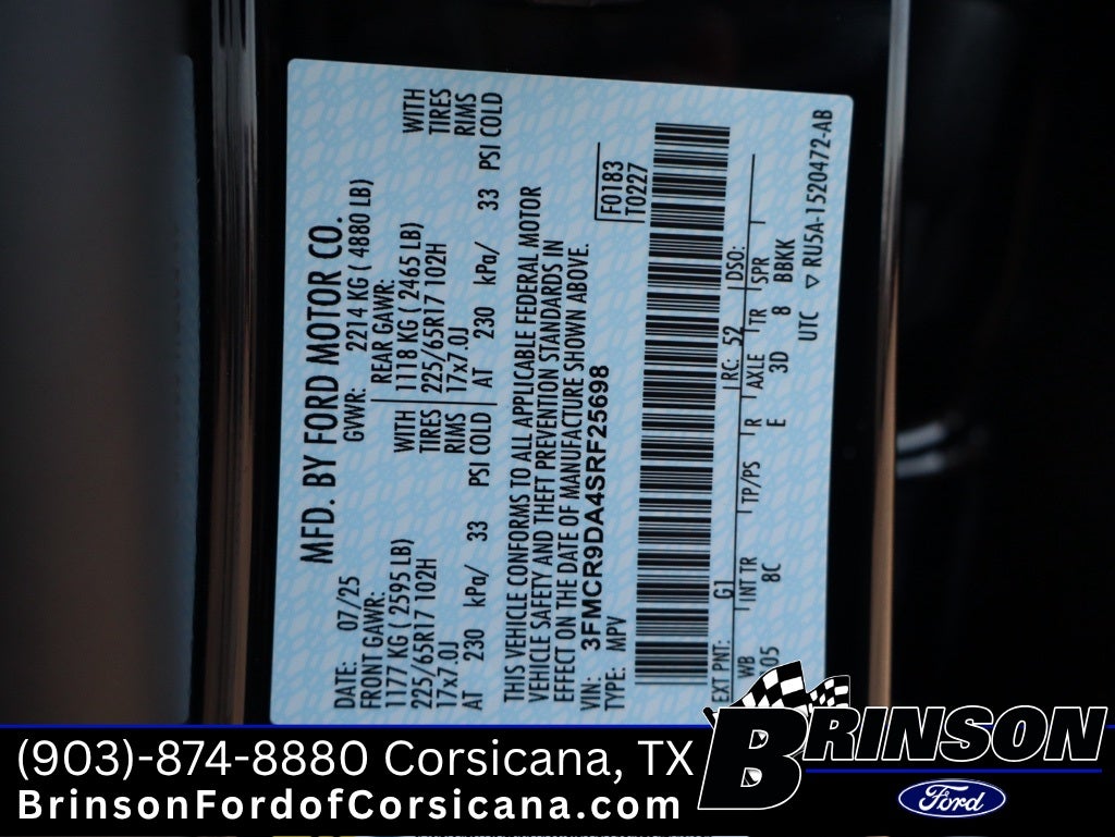 VIN: 3FMCR9DA4SRF25698