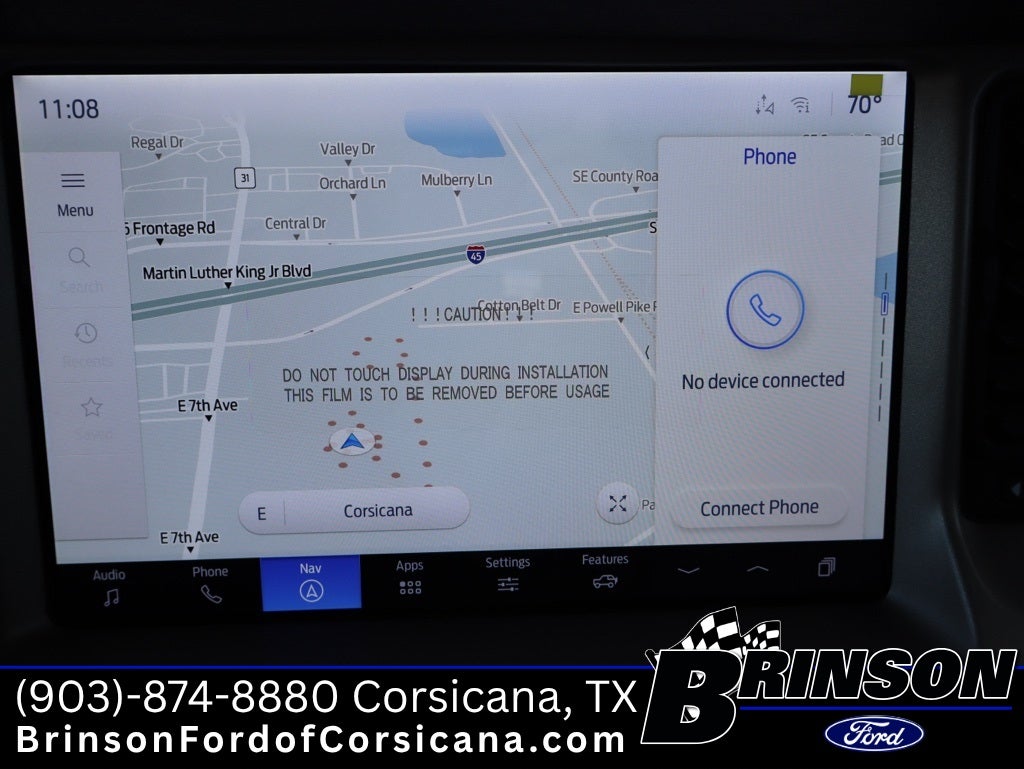 18 Bright Machined Aluminum Wheels, 3.73 Axle Ratio, 4-Wheel Disc Brakes, 7 Speakers, ABS brakes, Air Conditioning, Alloy wheels, AM/FM radio: SiriusXM with 360L, AM/FM Stereo, Auto High-beam Headlights, Auto-dimming Rear-View mirror, Automatic temperature control, Brake assist, Compass, Connected Navigation, Delay-off headlights, Driver door bin, Driver vanity mirror, Dual front impact airbags, Dual front side impact airbags, Electronic Stability Control, Emergency communication system: 911 Assist, Exterior Parking Camera Rear, Front anti-roll bar, Front Bucket Seats, Front Center Armrest, Front dual zone A/C, Front fog lights, Front reading lights, Front wheel independent suspension, Fully automatic headlights, Heated door mirrors, Heated front seats, Heated Leather-Trimmed/Vinyl Bucket Seats, Heated steering wheel, Illuminated entry, Integrated roll-over protection, Leather Shift Knob, Low tire pressure warning, Navigation system: Connected Navigation, Occupant sensing airbag, Outside temperature display, Overhead airbag, Overhead console, Panic alarm, Passenger door bin, Passenger vanity mirror, Power door mirrors, Power driver seat, Power passenger seat, Power steering, Power windows, Radio data system, Rear seat center armrest, Remote keyless entry, Security system, SiriusXM w/360L, Speed control, Split folding rear seat, Steering wheel mounted audio controls, SYNC 4, Tachometer, Telescoping steering wheel, Tilt steering wheel, Traction control, Trip computer, Variably intermittent wipers, and Voltmeter.