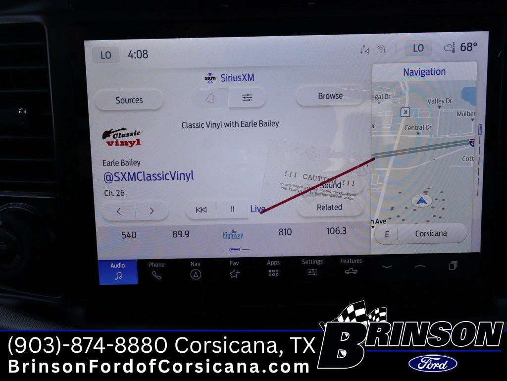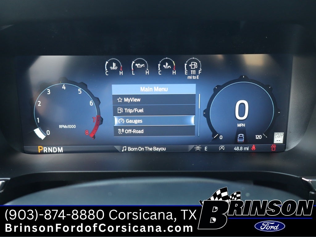 4WD, 3.31 Axle Ratio, 4-Wheel Disc Brakes, 8 Speakers, ABS brakes, ActiveX Trimmed Bucket Seats, Adjustable pedals, Air Conditioning, Alloy wheels, AM/FM radio: SiriusXM with 360L, Auto High-beam Headlights, Auto-dimming door mirrors, Auto-dimming Rear-View mirror, Automatic temperature control, Brake assist, Bumpers: chrome, Chrome wheels, Compass, Delay-off headlights, Driver door bin, Driver vanity mirror, Dual front impact airbags, Dual front side impact airbags, Electronic Stability Control, Emergency communication system: SYNC 4 911 Assist, Front anti-roll bar, Front Bucket Seats, Front Center Armrest, Front dual zone A/C, Front fog lights, Front reading lights, Front wheel independent suspension, Fully automatic headlights, Garage door transmitter, Heated door mirrors, Heated front seats, Heated steering wheel, Illuminated entry, Internet access capable: FordPass Connect 5G, Low tire pressure warning, Memory seat, Navigation system: Connected Navigation, Occupant sensing airbag, Outside temperature display, Overhead airbag, Overhead console, Panic alarm, Passenger door bin, Passenger vanity mirror, Pedal memory, Power door mirrors, Power driver seat, Power passenger seat, Power steering, Power windows, Radio data system, Radio: B&O Sound System by Bang & Olufsen, Rain sensing wipers, Rear reading lights, Rear seat center armrest, Rear step bumper, Rear window defroster, Remote keyless entry, Security system, Speed control, Split folding rear seat, Steering wheel mounted audio controls, SYNC 4 w/Enhanced Voice Recognition, Tachometer, Telescoping steering wheel, Tilt steering wheel, Traction control, Trip computer, Turn signal indicator mirrors, Variably intermittent wipers, Ventilated front seats, Voltmeter, and Wheels: 18 Chrome-Like PVD.