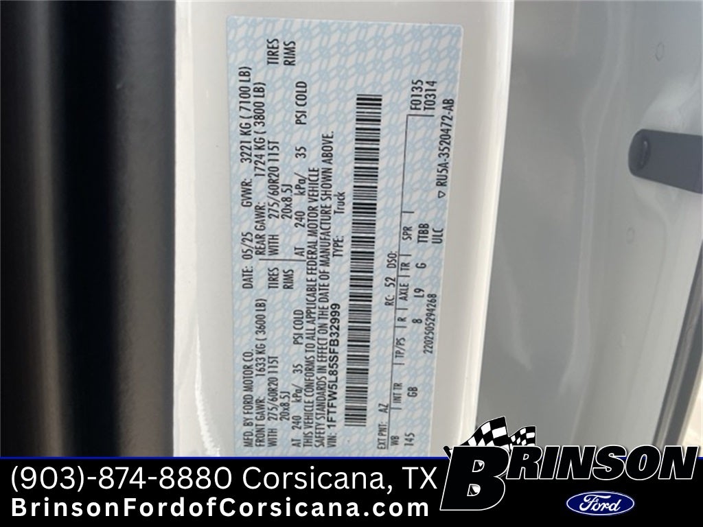 Star White Metallic Tri-Coat 2025 Ford F-150 Lariat 3.5L V6 EcoBoost 4WD 4D SuperCrew 10-Speed Automatic 4WD, 2nd Row Heated Seats, 4x4 FX4 Off-Road Bodyside Decal, Ambient Lighting - Ice Blue Color Only, Console Worksurface, Electronic Locking w/3.31 Axle Ratio, Equipment Group 502A High, FX4 Off-Road Package, Heads-Up Display, Hill Descent Control, Illuminated Driver & Passenger Visors, Mobile Office Package, Monotube Rear Shocks, Off-Road Tuned Front Shock Absorbers, Partitioned Lockable Rear Storage, Power-Sliding Rear Window, Radio: B&O Unleashed Sound System by Bang & Olufsen, Rock Crawl Mode, Tray Style Floor Liner w/o Carpet Mats, Wheels: 20 Chrome-Like PVD, Wireless Charging.