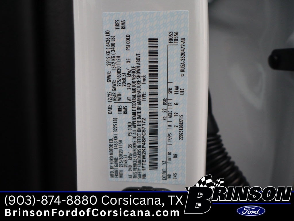 Whether you are from Corsicana, , , and , TX, we hope you will give us a chance to show why Brinson Ford of Corsicana Ford of Corsicana, Texas is the one of the best Ford dealers selling and servicing 2025 Ford F-150 4D SuperCrew STX in the Corsicana, area - 1FTEW2KP4SFC57172