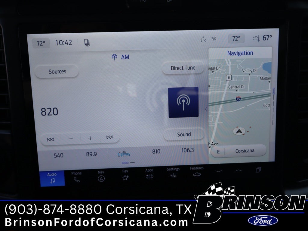 Ford Connectivity Package (1-Year Included), Internet access capable: 5G Modem - Ford Connectivity Package, 4WD, 3.31 Axle Ratio, 4-Wheel Disc Brakes, 8 Speakers, ABS brakes, Air Conditioning, Alloy wheels, AM/FM radio: SiriusXM with 360L, Auto High-beam Headlights, Auto-dimming door mirrors, Auto-dimming Rear-View mirror, Automatic temperature control, Brake assist, Bumpers: chrome, Chrome wheels, Compass, Delay-off headlights, Driver door bin, Driver vanity mirror, Dual front impact airbags, Dual front side impact airbags, Electronic Stability Control, Emergency communication system: SYNC 4 911 Assist, Front anti-roll bar, Front Bucket Seats, Front Center Armrest, Front dual zone A/C, Front fog lights, Front reading lights, Front wheel independent suspension, Fully automatic headlights, Garage door transmitter, Heated door mirrors, Heated front seats, Heated steering wheel, Illuminated entry, Low tire pressure warning, Memory seat, Navigation system: Connected Navigation, Occupant sensing airbag, Outside temperature display, Overhead airbag, Overhead console, Panic alarm, Passenger door bin, Passenger vanity mirror, Power door mirrors, Power driver seat, Power passenger seat, Power steering, Power windows, Radio data system, Radio: B&O Sound System by Bang and Olufsen, Rain sensing wipers, Rear reading lights, Rear seat center armrest, Rear step bumper, Rear window defroster, Remote keyless entry, Security system, Speed control, Split folding rear seat, Steering wheel mounted audio controls, SYNC 4 with Enhanced Voice Recognition, Tachometer, Telescoping steering wheel, Tilt steering wheel, Traction control, Trip computer, Turn signal indicator mirrors, Variably intermittent wipers, Ventilated front seats, and Wheels: 18 Chrome-Like PVD.