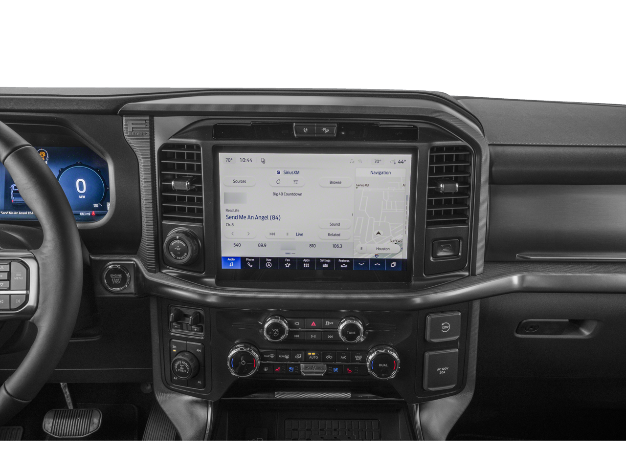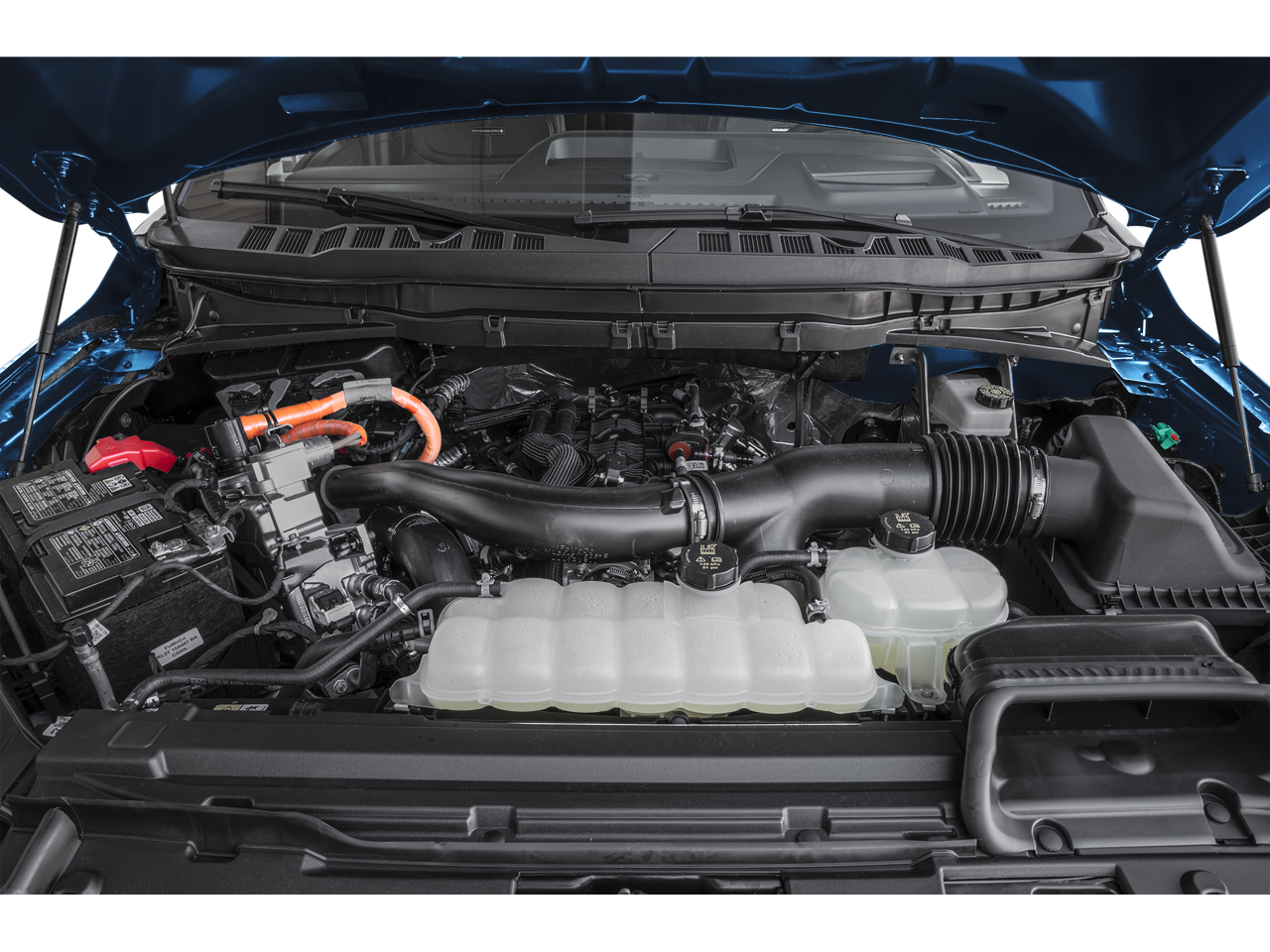 Ford Connectivity Package (1-Year Included), GVWR: 7,400 lbs Payload Package, Internet access capable: 5G Modem - Ford Connectivity Package, 3.5L PowerBoost Full-Hybrid V6, 4WD, 4-Wheel Disc Brakes, 8 Speakers, ABS brakes, Adjustable pedals, Air Conditioning, Alloy wheels, AM/FM radio: SiriusXM with 360L, Auto High-beam Headlights, Auto tilt-away steering wheel, Auto-dimming door mirrors, Auto-dimming Rear-View mirror, Automatic temperature control, Brake assist, Bumpers: body-color, Compass, Delay-off headlights, Driver door bin, Driver vanity mirror, Dual front impact airbags, Dual front side impact airbags, Electronic Locking with 3.55 Axle Ratio, Electronic Stability Control, Emergency communication system: SYNC 4 911 Assist, Front anti-roll bar, Front Bucket Seats, Front Center Armrest, Front dual zone A/C, Front fog lights, Front reading lights, Front wheel independent suspension, Fully automatic headlights, Garage door transmitter, Heated door mirrors, Heated front seats, Heated rear seats, Heated steering wheel, Illuminated entry, Leather steering wheel, Low tire pressure warning, Memory seat, Navigation system: Connected Navigation, Occupant sensing airbag, Outside temperature display, Overhead airbag, Overhead console, Panic alarm, Passenger door bin, Passenger vanity mirror, Pedal memory, Power door mirrors, Power driver seat, Power passenger seat, Power steering, Power windows, Radio data system, Radio: B&O Sound System by Bang and Olufsen, Rain sensing wipers, Rear reading lights, Rear seat center armrest, Rear step bumper, Rear window defroster, Remote keyless entry, Security system, Speed control, Split folding rear seat, Steering wheel memory, Steering wheel mounted audio controls, SYNC 4 with Enhanced Voice Recognition, Tachometer, Telescoping steering wheel, Tilt steering wheel, Traction control, Trip computer, Turn signal indicator mirrors, Unique Multi-Contour Leather Bucket Seats, Variably intermittent wipers, Ventilated front seats, and Wheels: 20 Painted Gloss Ebony Black.