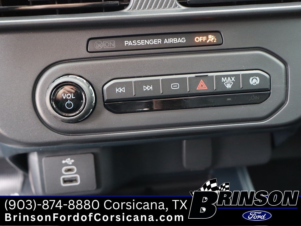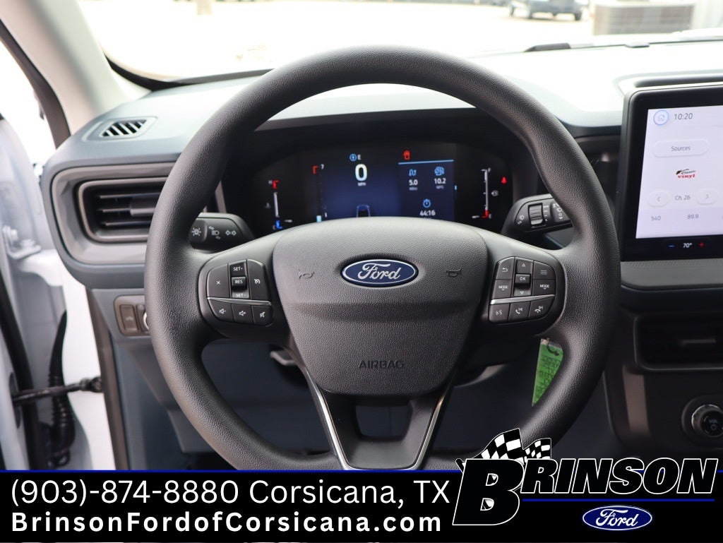 Ford Connectivity Package (1-Year Included), Internet access capable: 5G Modem - Ford Connectivity Package, 2.91 Axle Ratio, 4-Wheel Disc Brakes, 6 Speakers, ABS brakes, Air Conditioning, AM/FM radio: SiriusXM with 360L, Apple CarPlay/Android Auto, Auto High Beams, Auto High-beam Headlights, Automatic temperature control, Brake assist, Bumpers: body-color, Compass, Delay-off headlights, Driver door bin, Driver vanity mirror, Dual front impact airbags, Dual front side impact airbags, Electronic Stability Control, Emergency communication system: SYNC 4 911 Assist, Exterior Parking Camera Rear, Four wheel independent suspension, Front anti-roll bar, Front Bucket Seats, Front Center Armrest, Front Cloth Bucket Seats, Front reading lights, Fully automatic headlights, Illuminated entry, Intersection Assist, Knee airbag, Lane-Keeping System, Low tire pressure warning, Occupant sensing airbag, Outside temperature display, Overhead airbag, Overhead console, Panic alarm, Passenger door bin, Passenger vanity mirror, Power steering, Power windows, Radio data system, Rear anti-roll bar, Rear step bumper, Rear-View Camera, Remote keyless entry, Speed control, Speed-sensing steering, Steering wheel mounted audio controls, Telescoping steering wheel, Tilt steering wheel, Traction control, and Trip computer. 22/30 City/Highway MPG