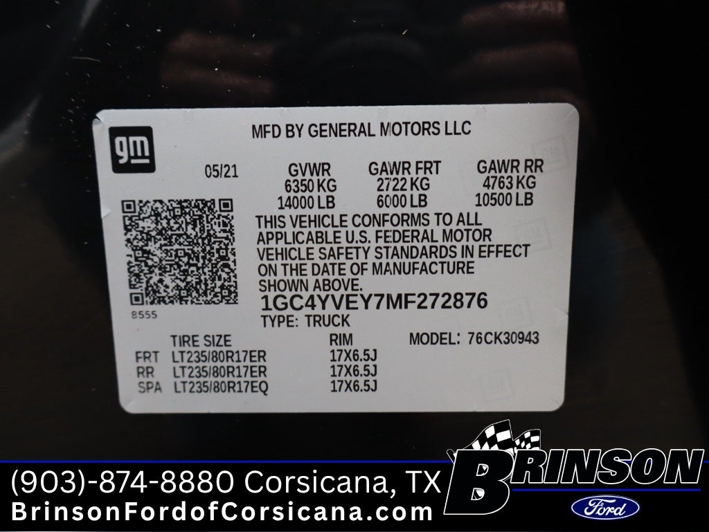 Whether you are from Corsicana, , , and , TX, we hope you will give us a chance to show why Brinson Ford of Corsicana Ford of Corsicana, Texas is the one of the best Ford dealers selling and servicing 2021 Chevrolet Silverado 3500HD 4D Crew Cab High Country in the Corsicana, area - 1GC4YVEY7MF272876