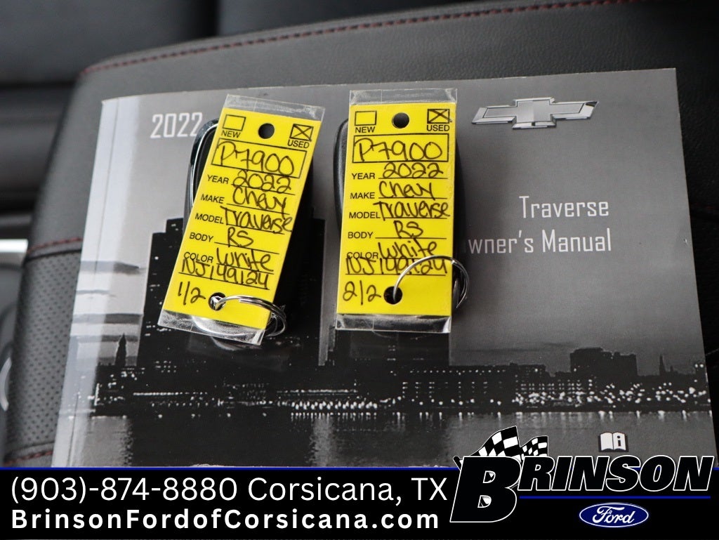 Research the 2022 Chevrolet Traverse Corsicana at Brinson Ford of Corsicana. Here are pictures, specs, and pricing for the 2022 Chevrolet Traverse 4D Sport Utility RS located near Corsicana. You can call our Corsicana,TX location, serving Corsicana, TX, , , TX to inquire about the 2022 Chevrolet Traverse 4D Sport Utility RS or another 2022 Chevrolet Traverse 4D Sport Utility RS.